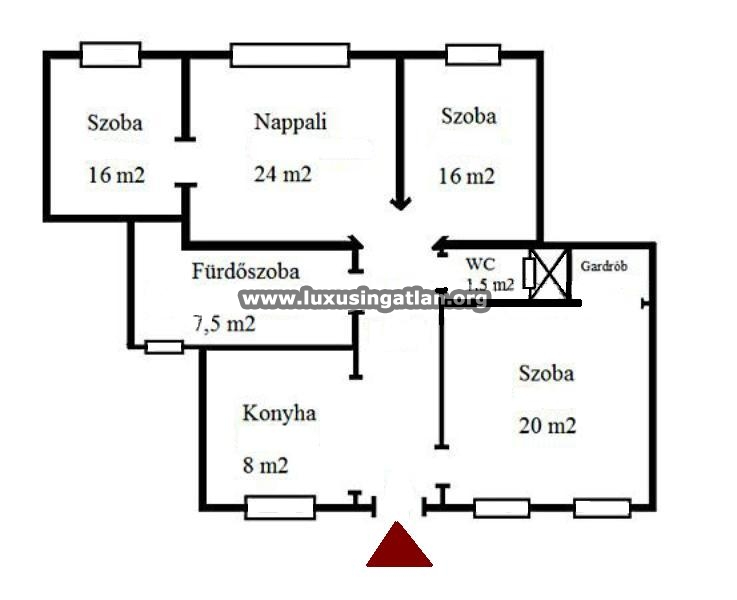 A lakás 3 külön bejáratú szobával, plusz egy nappaliból nyíló szobával rendelkezik, (a régi állapotok visszaállításával ez a szoba is külön-nyílóvá alakítható és a zuhanyfülkét elválasztva a fürdő többi részértől egy kis különálló lakrész építhető ki) kelet-nyugati tájolásának köszönhetően mindig világos.