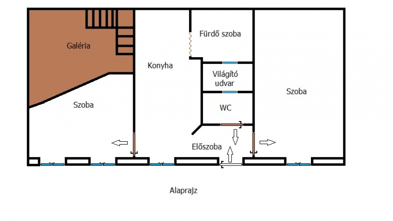 Az ingatlan 2 külön bejáratú szobával, előszobával, külön bejáratú, szellőző ablakos toalettel, külön bejáratú, szellőző ablakos, kádas fürdőszobával, egy tágas étkezős konyhával rendelkezik.