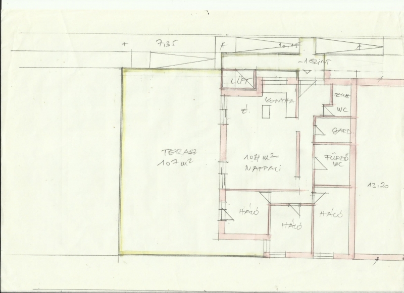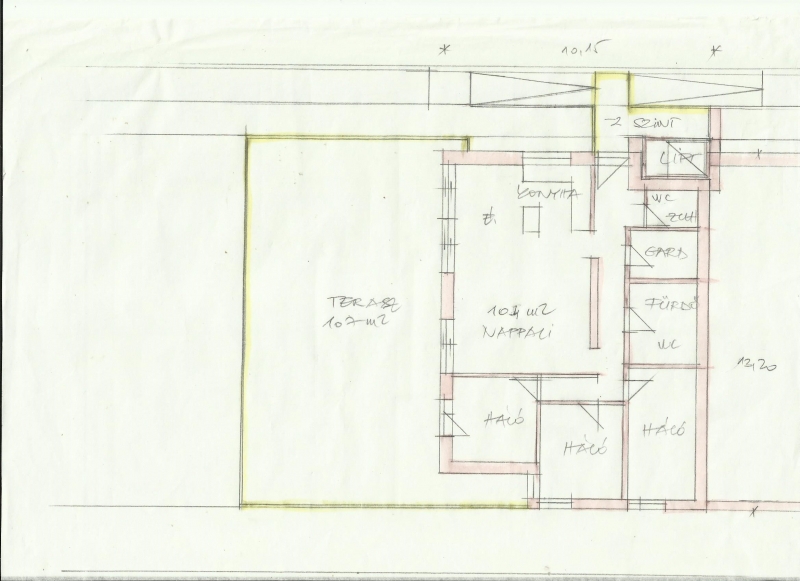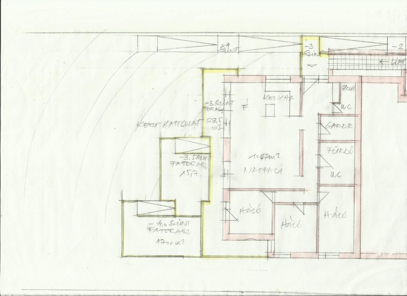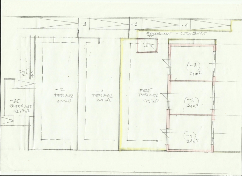 Vázlattervek 4 nagyméretű lakás + gépkocsi beállókkal vagy 3 nagyméretű lakás saját garázzsal és lift megközelítéssel mellékelve.
