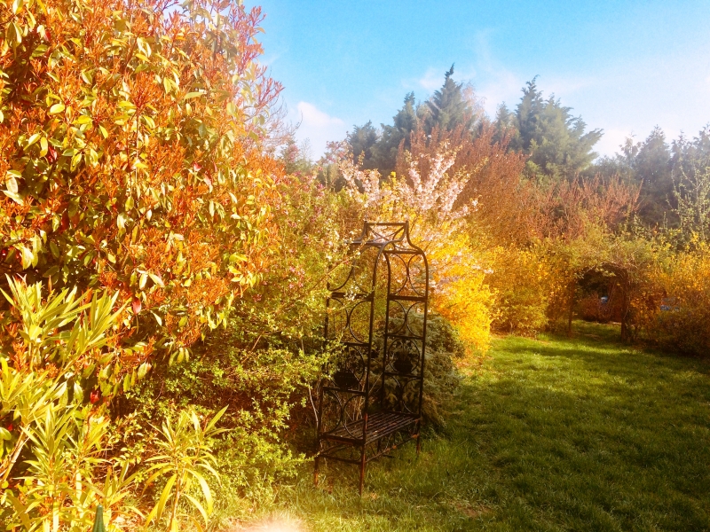A 710 m2 kert intim, örökzöldekkel, lombhullatókkal beültetett, gondozott, ápolt, nagyméretű, tárolásra alkalmas faházzal.
