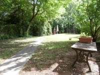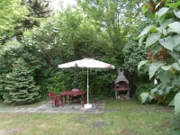 Az ingatlanhoz egy 500 m2-es saját kert és 2 vagy több gépkocsi beállására alkalmas udvari gépkocsi parkoló terület tartozik. Az ősfás környezetben kerti grill, szalonnasütő hely, sziklakert és akár belső játszótér kialakítására alkalmas nagyon szép zöld kert található, amely kizárólag ehhez a 2 önálló lakást tartalmazó ingatlanhoz kapcsolódik.