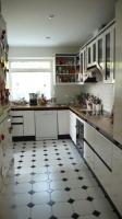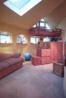 A legalsó, tágas alsó füves kertrészhez kapcsolódó lakásban jelenleg 3 szoba, 2 hálószoba, egy hatalmas étkezős konyha, mosókonyha, 2 fürdőszoba és egy gardrób tartozik.