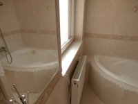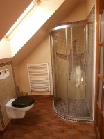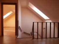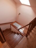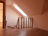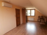 A belső lépcsőházból elérhető emeleti, tetőtér beépítéses részben található további 2 hálószoba és egy zuhanyzóval és WC-vel ellátott fürdőszoba. Ez utóbbiban szauna hely és ehhez szükséges áramellátás került kialakításra.