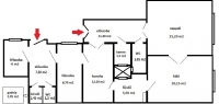 A lakás helyiségei: nappali, hálószoba, két félszoba, kádas fürdőszoba, konyha, két különálló WC, két előszoba, kamra, tároló, plusz a második előszobában kialakított 3 nm-es zárt, 1,5 m magas tároló galéria.