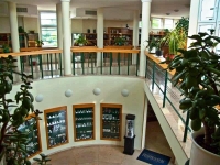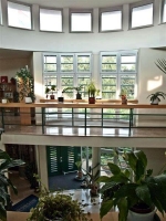 A földszint és emeleti szint nagyin igényes, átriumos megoldással került megépítésre, számtalan ablakkal és bevilágító felülettel, minőségi belsőépítészeti kivitelezésben. Kis és nagykereskedelmi tevékenységre alkalmas bemutató területek, üzletterek, iroda és egyéb kiszolgáló helyiségek találhatók itt.