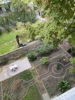 A lakás 2 irányban szabad térre nyílik, az erkélyes, nagy szobás homlokzat a csendes utcafronton található, jó magasságban, nagyon sok fénnyel, jó levegővel és napsütéssel, a lakás belső udvarra, illetve belső saját kertre néző oldalán pedig a másik nagyszoba, a konyha és a félszoba található.